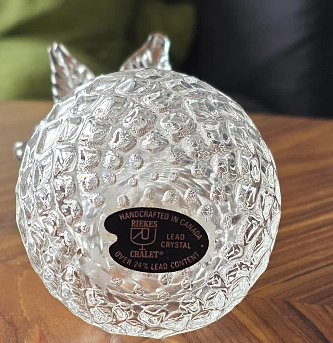 The most common branding was the small gold foil “Chalet Lead Crystal’ sticker. However, few found retain their original labels. They can be very hard to distinguish from the Rossi made cranberry apples (shown later).