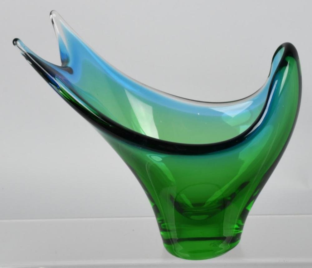 Lorraine Glass Industries piece at right and Chalet Artistic Glass form at left.