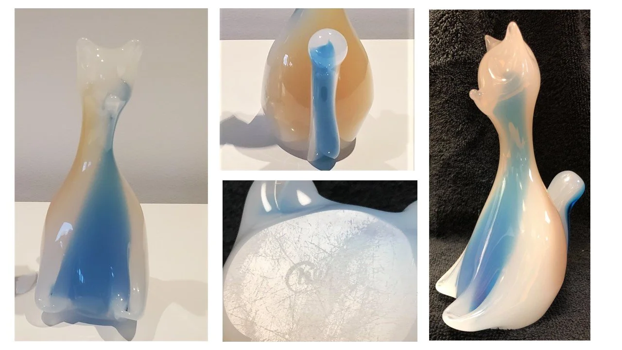 Chalet also used multiple colours in their upright opaline cat figurine.