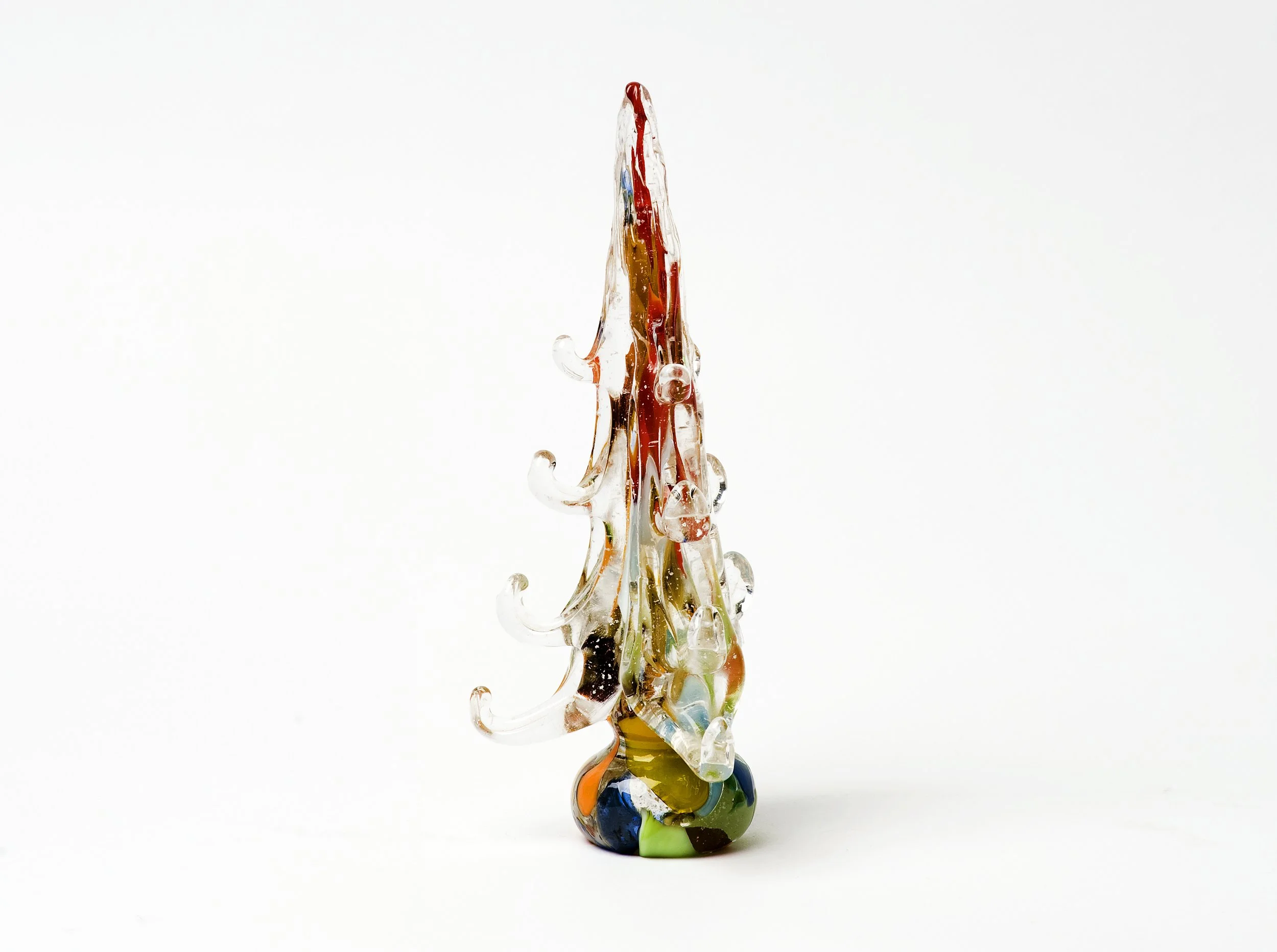 The Chalet Maestri and artists attending the 2010 Chalet exhibit in Cornwall were astounded to see these forms. To a man – none were aware that the company had ever produced paperweights. This suggests that only Chalet owners and master glassblowers Sergio Pagnin and/or Luigi Tedesco were involved in their creation. Moreover, the numbers of found paperweights do not contradict this theory as they are quite rare and could easily have been produced in a weekend run. We have been told by the artists that it was quite typical for the Chalet owners to work over a weekend on new designs and sample pieces.