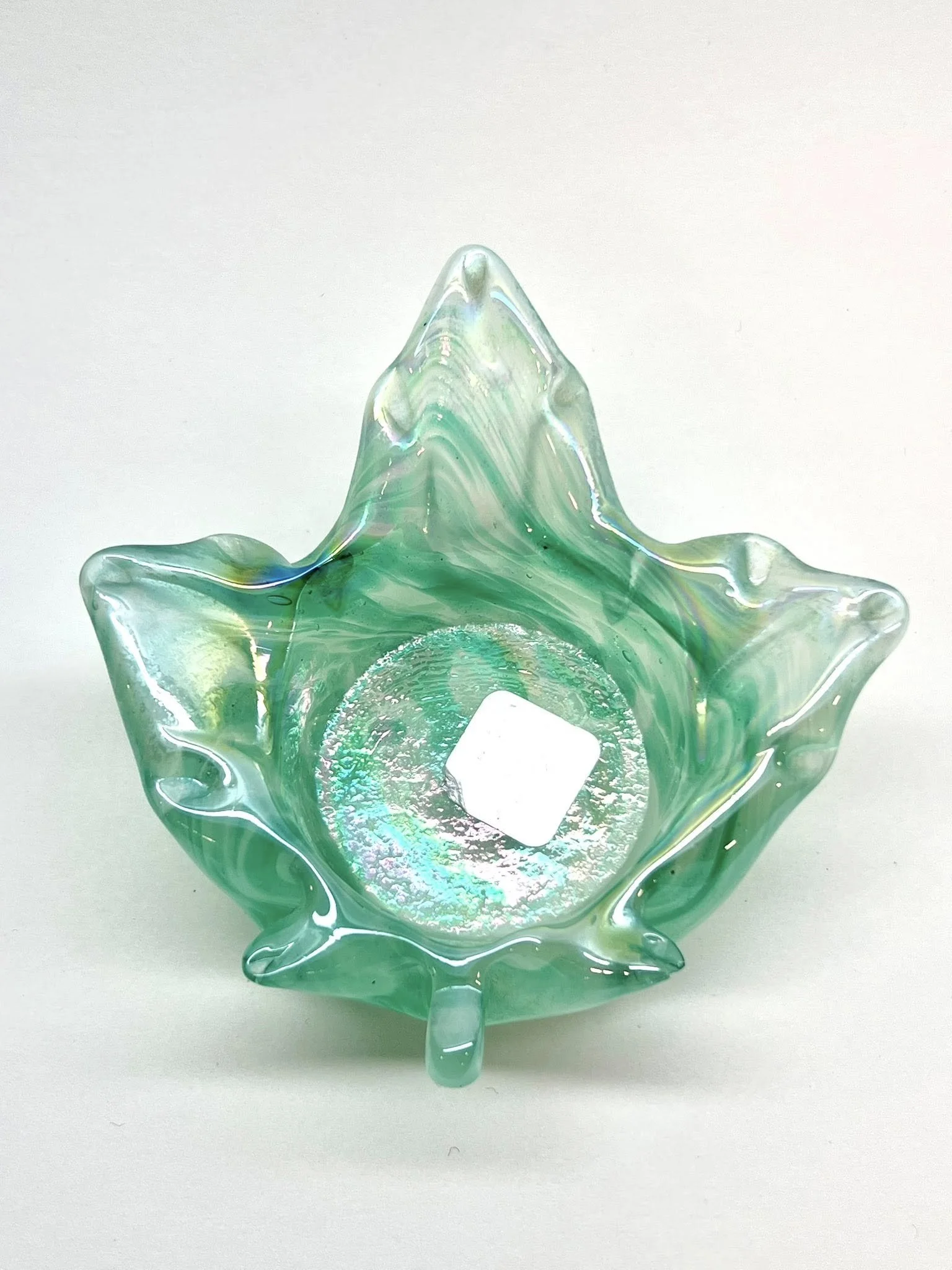 Lorraine Glass Industries produced leaves in both “maple” and “birch” leaf designs. Centerpieces and ashtrays with a leaf shape are found.