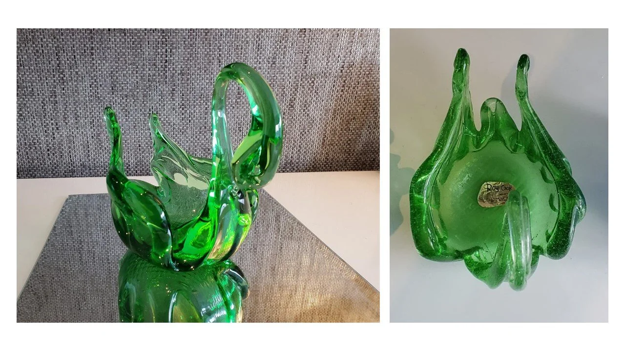 To date, this is the only uranium swan centerpiece of which we are aware. Lucky owner is Cindy Bishop-Laughlin.