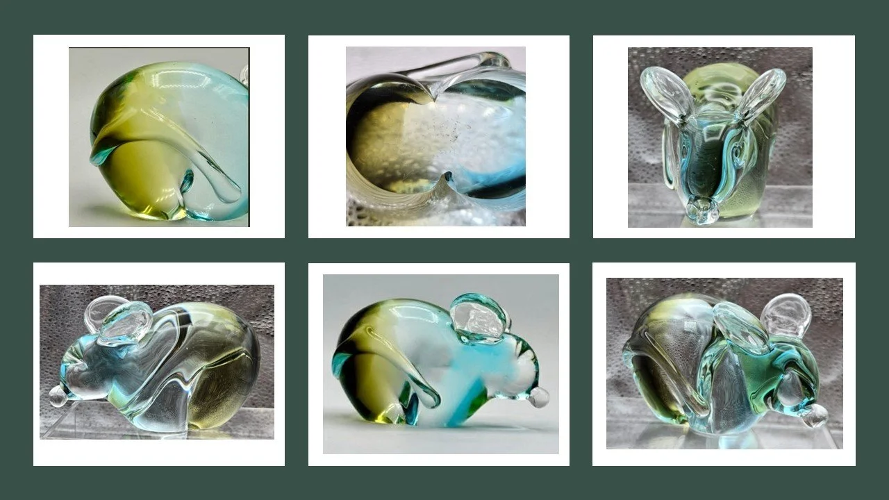 This is the only just bullicante Chalet animal figurine of which I know. Most that are bullicante, like the “Buddha belly” owls and curled up cats are also avventurina. Troy Danby is an incredibly lucky collector!